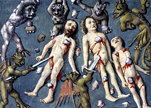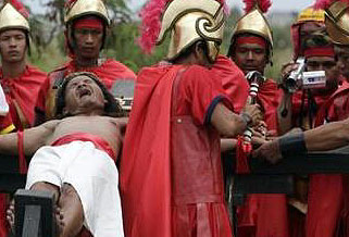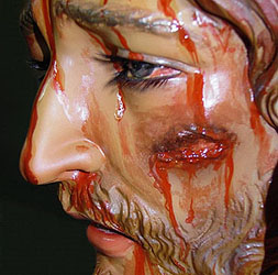 bleeding scalp, and gaping wound in his side; or Mary with her