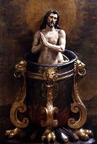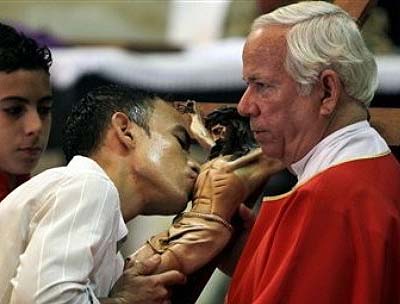 stigmata, fondles and kisses the bleeding wounds of Jesus